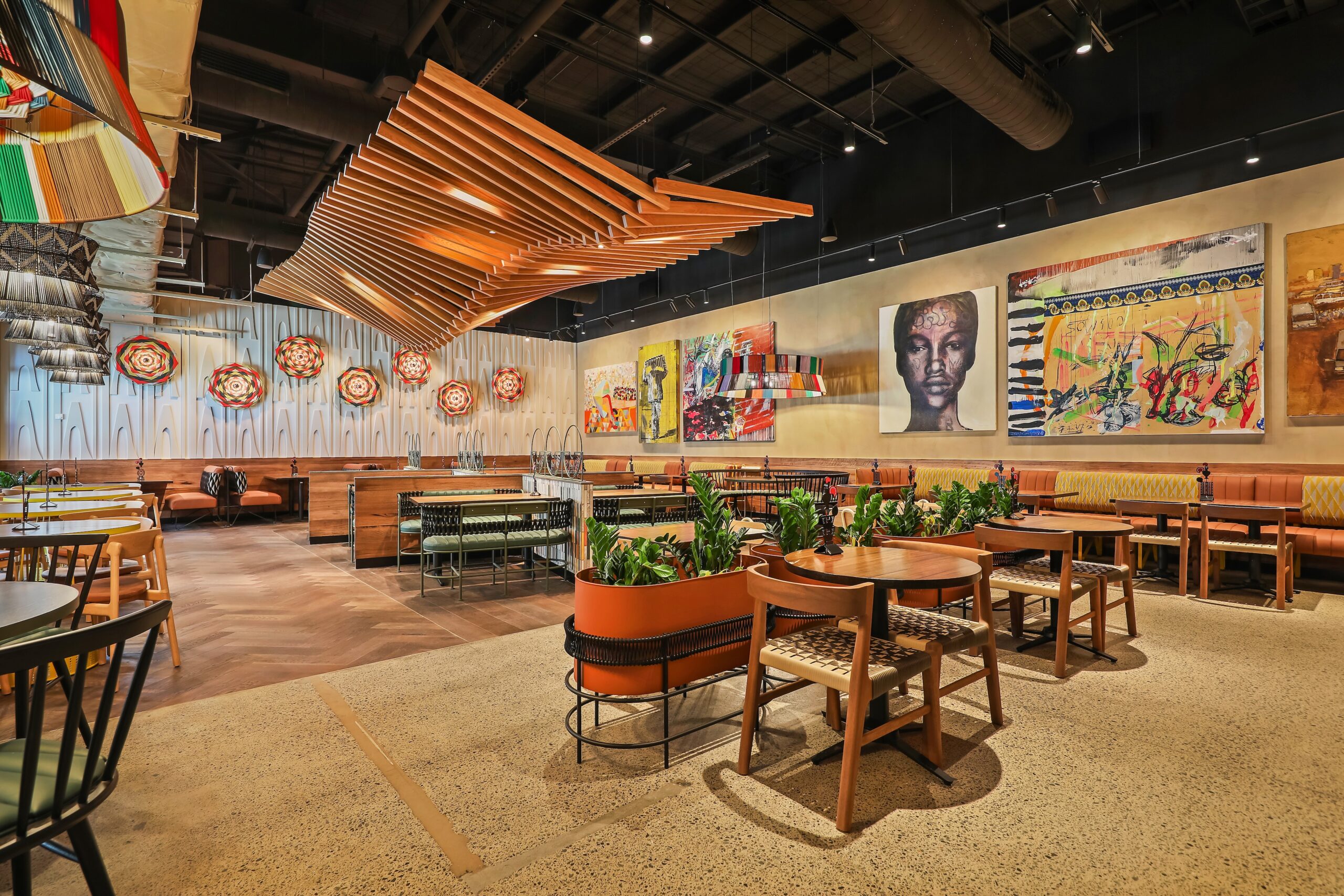 An outdoor waterfront dining area capitalises on the plaza’s riverside setting, while the interior reflects Nando’s Southern African heritage with original artwork, custom seating and authentic African tiles.
